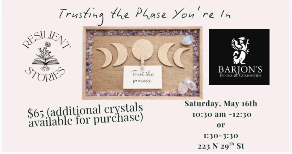 Join us for an afternoon of quiet reflection and intentional making with Danielle Dahl of Resilient Stories. In this workshop, Danielle guides you through building your own moon phase intention tray — a simple, beautiful altar piece using wooden moon forms, crystal chips, and a mini clothespin to hold an intention card you can swap out as your inner seasons shift.